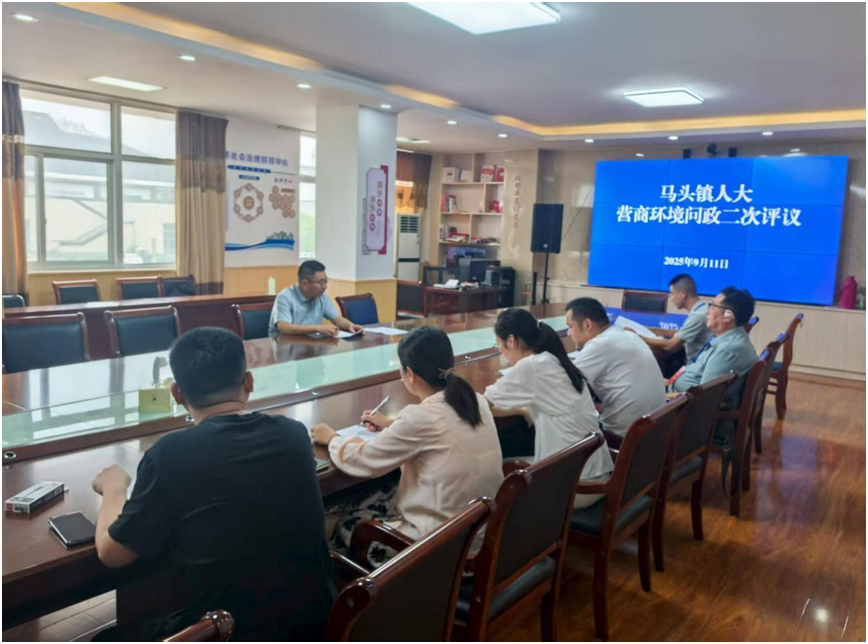 为持续优化营商环境,马头镇人大创新推出“人大代表+企业代表+群众代表”三方联合评议机制,对卫健委、生态环境局、城管局等涉企部门在乡镇工作开展情况进行现场评议。代表们围绕政务服务效率、政策支持力度、解读清晰度等议题展开热烈讨论,不回避矛盾、不遮掩问题,提出多项建设性意见。评议活动不仅搭建起政企民沟通的“连心桥”,也汇聚多方智慧,推动涉企服务不断优化,使营商环境“软实力”有效转化为发展“硬支撑”。