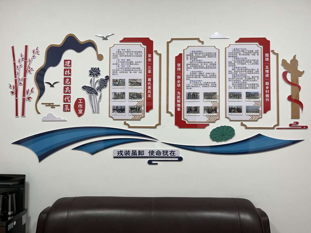 在镇人大的指导支持下,2023年8月,由他牵头并命名的“建林老兵代表工作室”正式成立。工作室集聚10名退役军人代表驻点履职,常态化开展接待选民、走访群众、为民办实事及红色教育等活动。经过两年运行发展,这个以老兵为主体的代表平台,已逐步成长为凝聚“戎光”力量、服务基层治理、助推乡村振兴的人大代表综合服务平台。