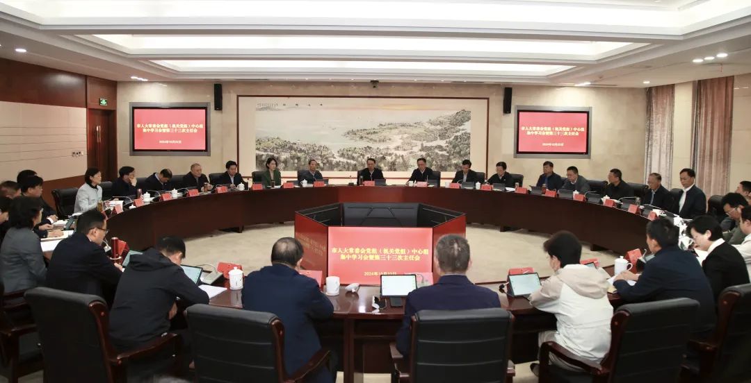 10月22日下午,市人大常委会党组(机关党组)中心组集中学习会暨第三十三次主任会议召开。市人大常委会常务副主任、党组副书记周毅主持会议并讲话,市人大常委会副主任赵权、范更生、徐利华、周茂萱,秘书长殷强参加会议。
