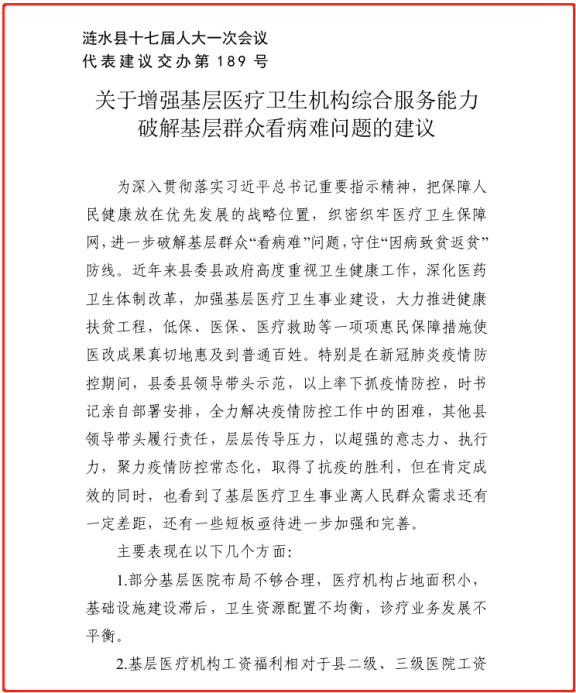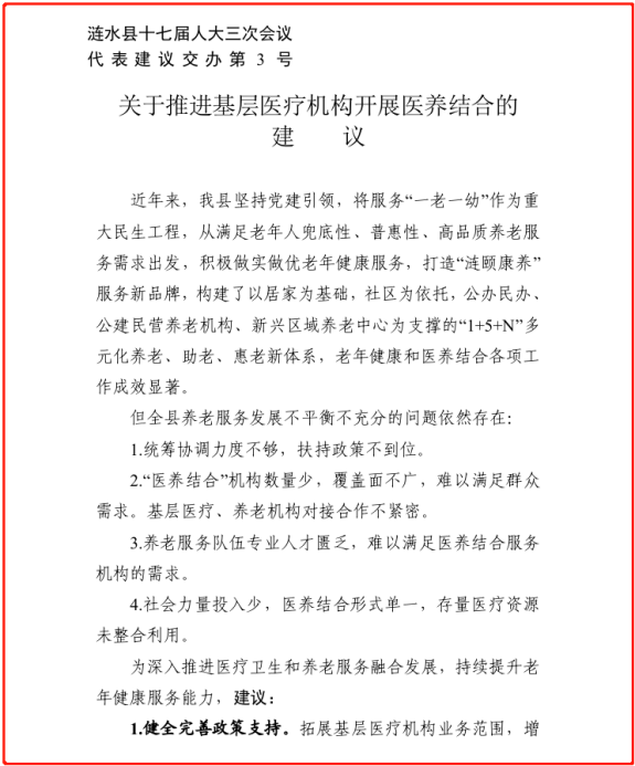 每年人代会,濮燕君提交的建议案都带着“基层烟火气”——这些建议源于她对医疗一线的观察、对群众诉求的收集,更紧扣国家政策导向与地方发展实际,精准指向民生痛点。