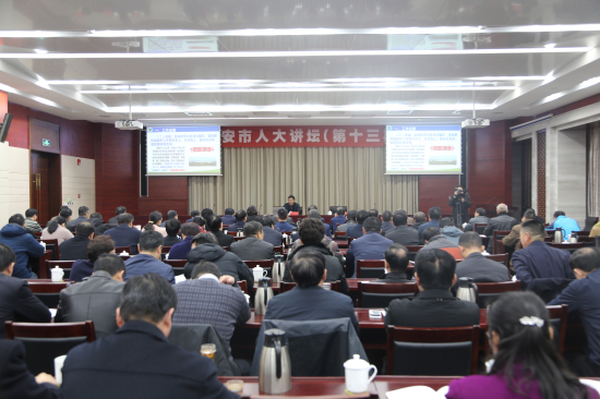 2月27日上午,第十三期淮安市人大讲坛开讲,邀请省生态环境厅副厅长潘良宝作题为《全面加强生态环境保护 坚决打好污染防治攻坚战》专题讲座。市人大常委会副主任李冰主持讲坛。市人大常委会副主任、党组副书记刘华,市人大常委会副主任徐利华、周茂萱,党组成员许步健,秘书长张进成出席讲坛。