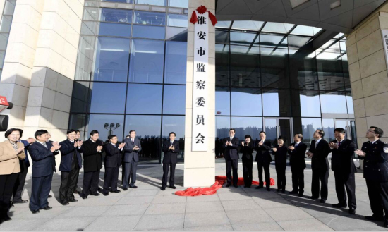 1月10日上午,淮安市首届监察委员会正式挂牌成立。市委书记、市人大常委会主任姚晓东,市委常委、市纪委书记、市监委主任李晓雷共同揭牌。市领导蔡丽新、王维凯、张彤、戚寿余、赵洪权、葛平、刘必权参加揭牌。