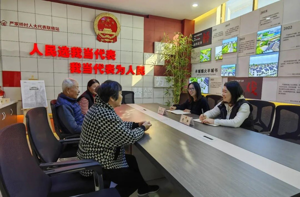 在锡山区羊尖镇严家桥古村,民主实践更是浸润着江南韵味。近年来,羊尖镇人大代表踩着青石板走访,把“修复古街”“传承锡剧”的民声写成建议。如今,唐苑景区的清代地砖旁多了AR导览,锡剧纪念馆里4K影像让老腔新唱,景溪书房“代表荐书区”的《乡土中国》里还夹着村民写下的“留住乡愁”的便签。这幅古今交融的画卷背后,正是羊尖镇人大代表历时三年的履职足迹,以监督推动改变,使严家桥古村在时代浪潮中重新绽放出文化光彩。